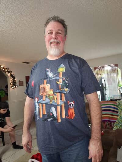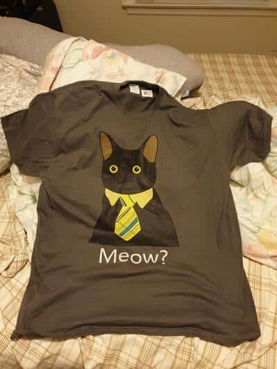 Fits well. Nice feel. The printing of the cat looks very nice but still have to see how well it survives the wash.